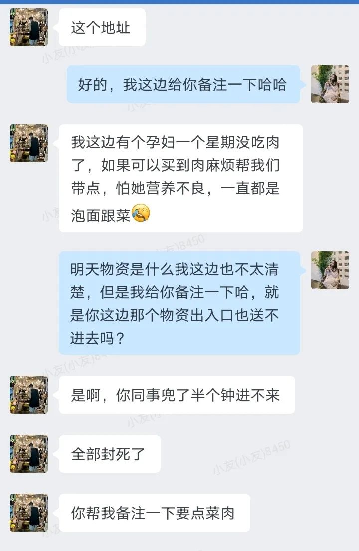 4月15日,我們再次聯系林先生,嘗試將物資包送往他有通行證的朋友,無奈又得來一個壞消息——林先生的朋友所在區(qū)域也成了封控區(qū)域。