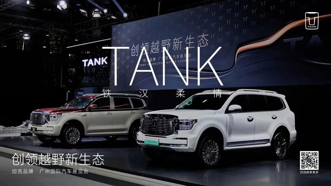 坦克500PHEV長(zhǎng)續(xù)航版、坦克300聯(lián)合CYBERSPACE超境共同打造的坦克300賽博騎士首次亮相廣州車展。