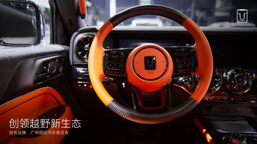 坦克300聯(lián)合CYBERSPACE超境共同打造的坦克300賽博騎士首次亮相廣州車展,內(nèi)飾有“耀斑橙”和“脈沖藍(lán)”兩款,酷炫耀眼。